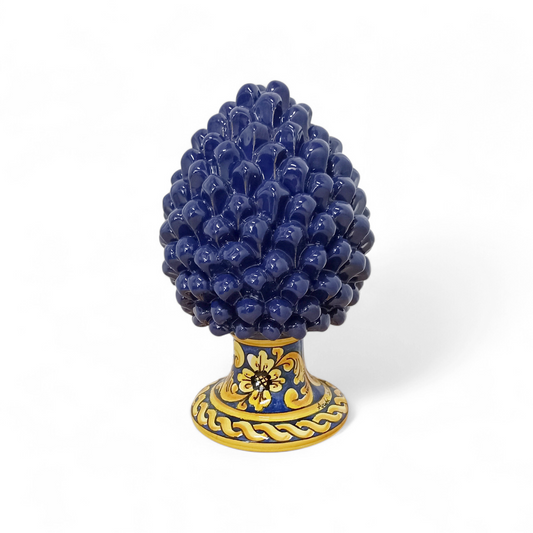 Pigna Blu con Piede Decorato in Ceramica Siciliana 30cm