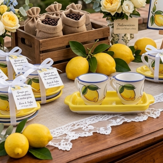 Tazzine da Caffè con Vassoio in Ceramica di Caltagirone - Bomboniera Siciliana