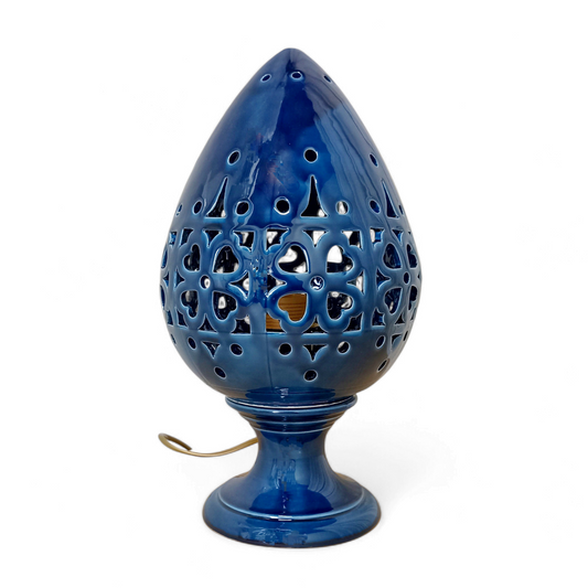 Lume "Pomo" Traforato Blu in Ceramica di Caltagirone 35cm