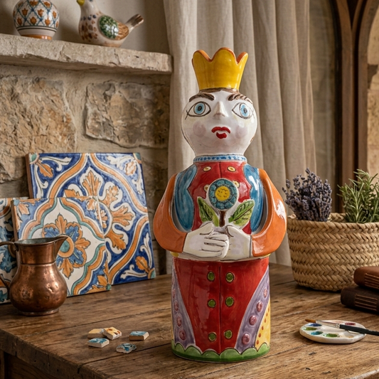 Regina Porta Candela in ceramica di Sicilia - Collezione pupi