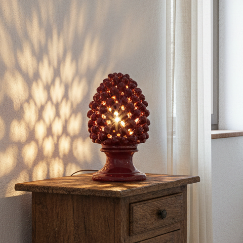 Pigna Lume Traforato Bordeaux 30cm in Ceramica Siciliana di Caltagirone