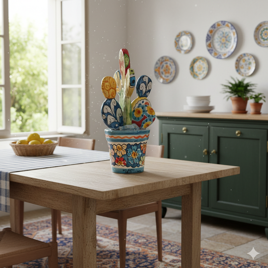 Pianta Fico d'India 29cm Multicolor in Ceramica Siciliana di Caltagirone