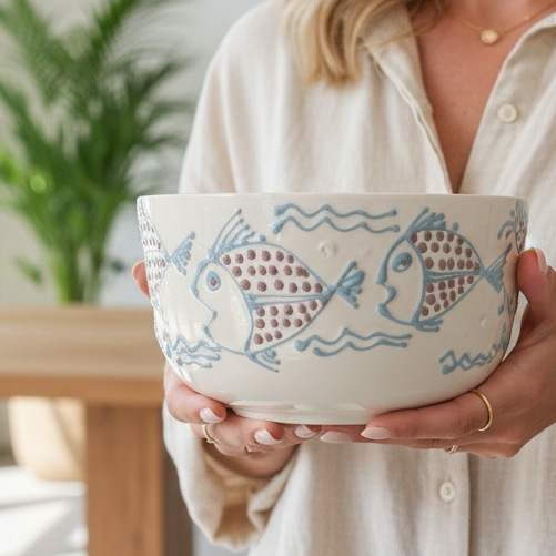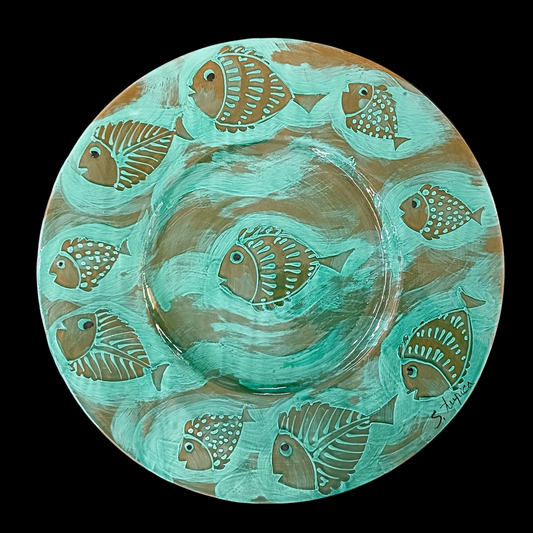 Piatto con Falda ''Pesci'' 38cm in Maiolica di Sicilia