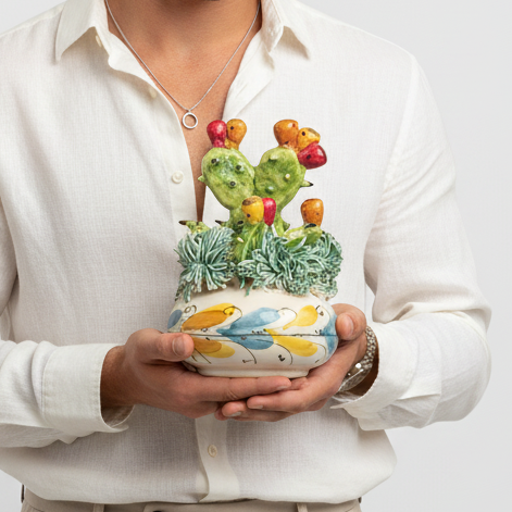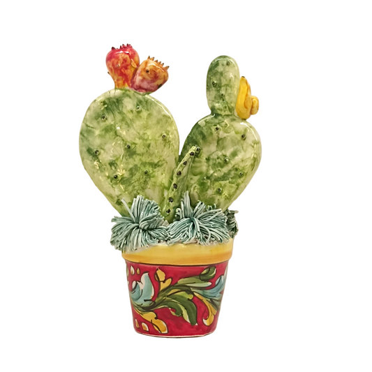 Piantina Fico d'India 21cm in Maiolica di Caltagirone