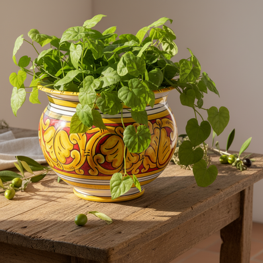 Portapiante Decorato 30cm in Ceramica di Caltagirone