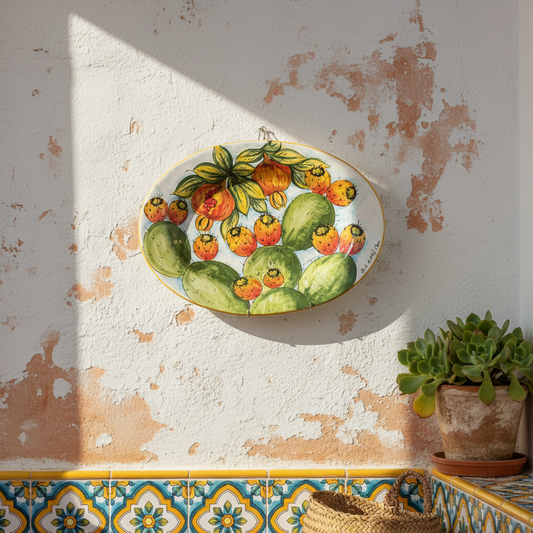 Centrotavola Pale di Fico d'India 30cm in Ceramica Siciliana di Caltagirone