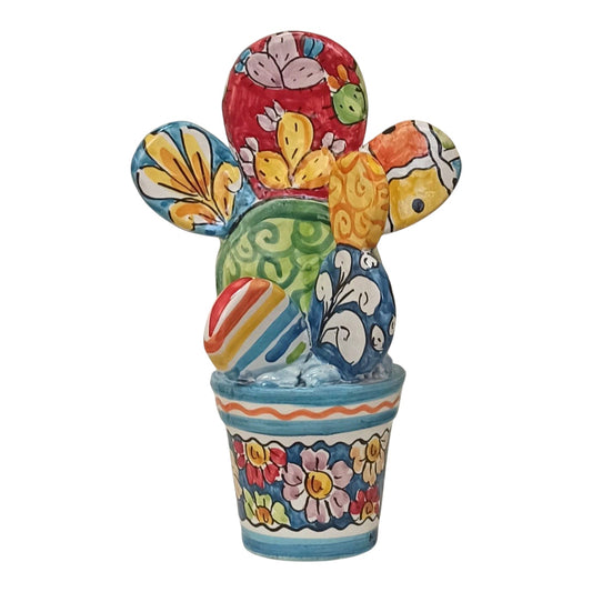 Pianta Fico d'India Patchwork in Ceramica Siciliana di Caltagirone - Varie Misure