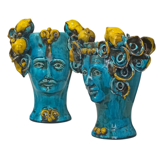 Teste di Moro h.25cm in Maiolica Siciliana di Santo Stefano di Camastra