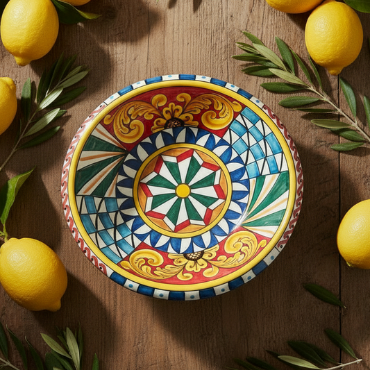 Centrotavola Decorato 31cm in Maiolica Siciliana di Santo Stefano di Camastra