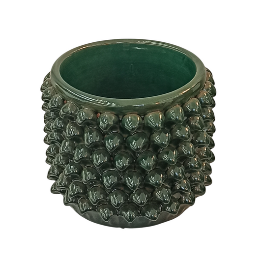 Secchiello Portabottiglie da Tavolo Pigna 20cm Verde in Maiolica Artigianale di Caltagirone