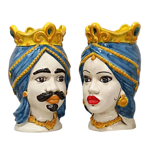 Coppia Teste di Moro 14cm in Ceramica Siciliana di Caltagirone