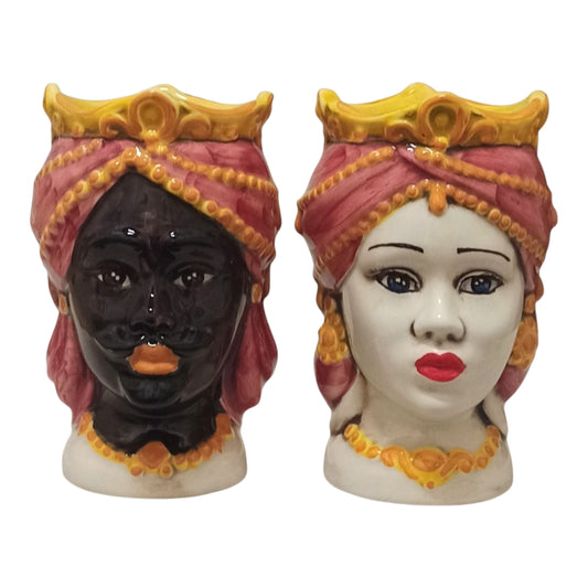 Coppia Teste di Moro 14cm in Ceramica Siciliana di Caltagirone