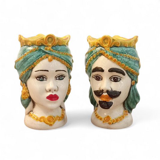 Coppia Teste di Moro 14cm in Ceramica Siciliana di Caltagirone