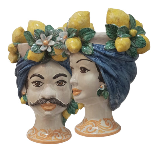 Teste di Moro h.33cm in Maiolica Siciliana di Caltagirone