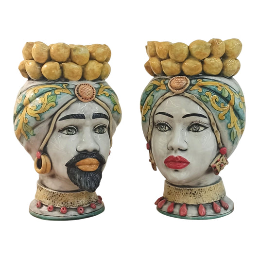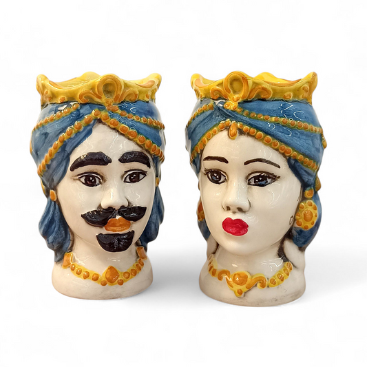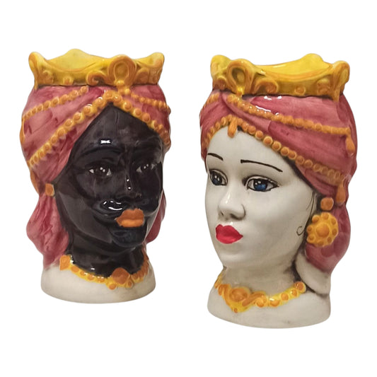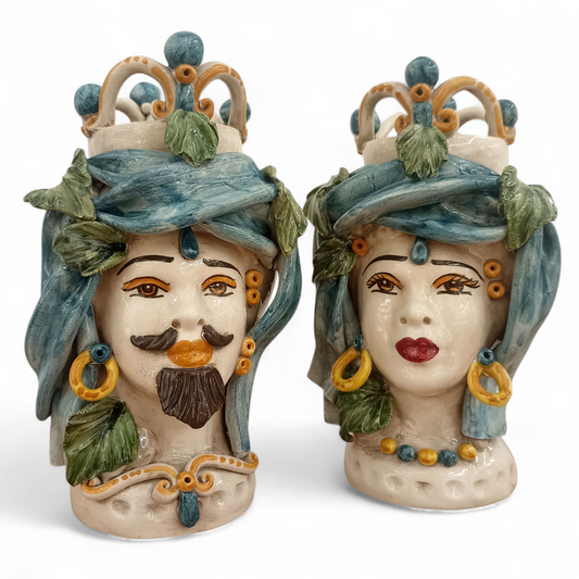 Coppia Teste di Moro 14cm in Ceramica Siciliana di Caltagirone