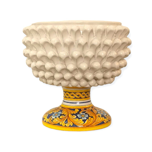 Vaso Pigna Avorio 35cm con Piede Decorato in Ceramica Siciliana di Santo Stefano di Camastra