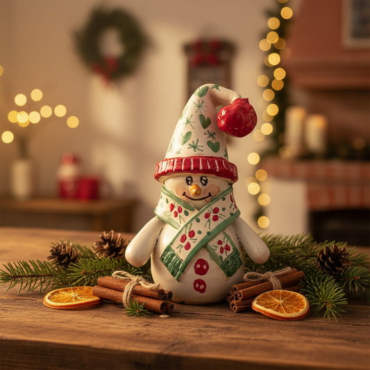 Sicilian Ceramic Snowman 15cm from Caltagirone