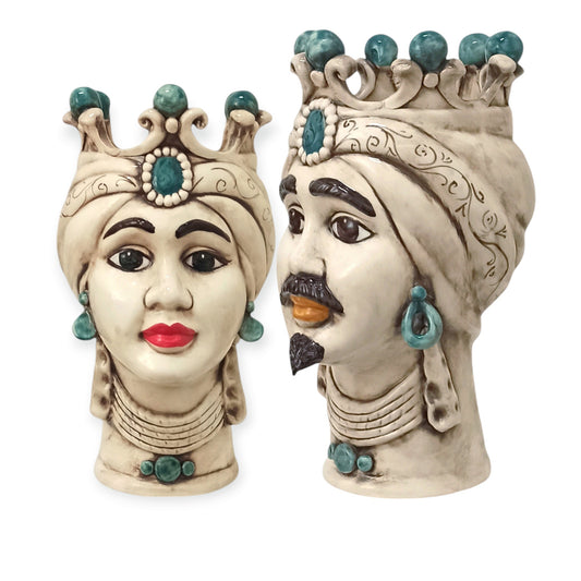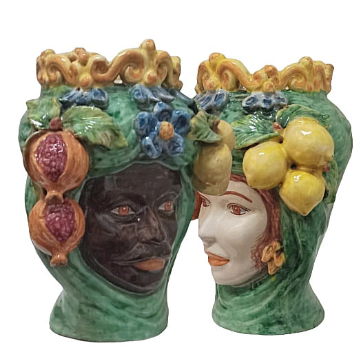 Moorish Heads, 25cm high, in Sicilian Majolica from Santo Stefano di Camastra