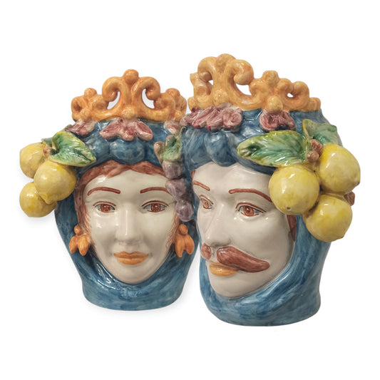 Moorish Heads Lemons 38cm in Sicilian Majolica from Santo Stefano di Camastra