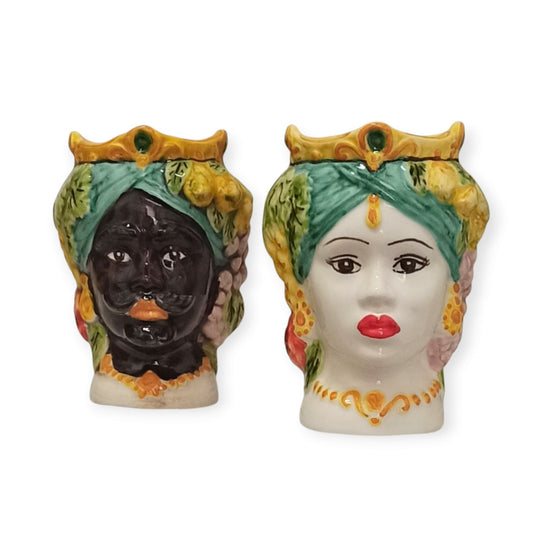 Pair of Moor's Heads, 14cm,in Sicilian Ceramic from Caltagirone