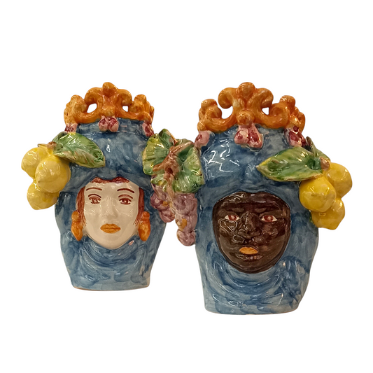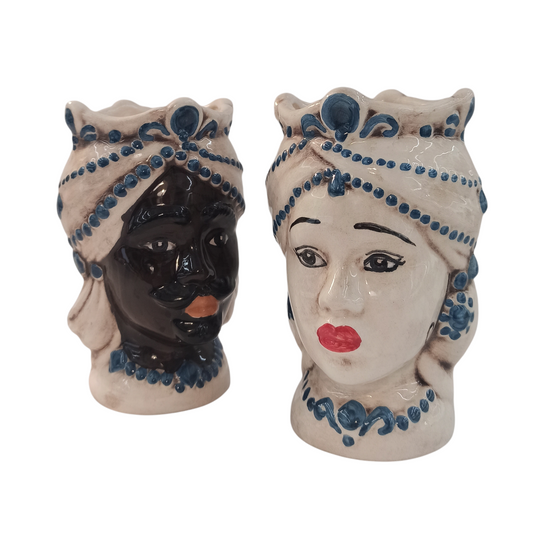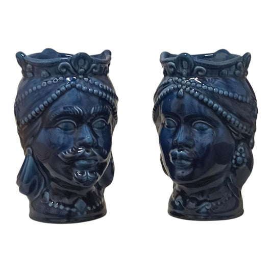 Pair of Blue Moorish Heads in Sicilian Ceramic from Caltagirone - Various Sizes