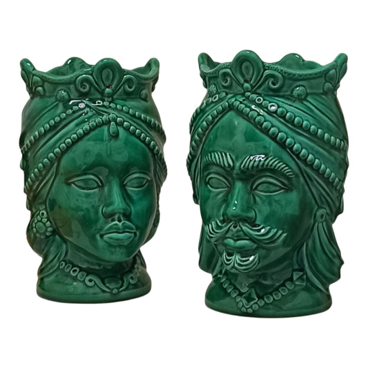 Pair of Green Moorish Heads in Sicilian Ceramic from Caltagirone - Various Sizes