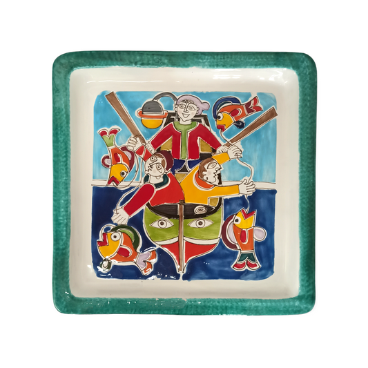 Sicilian Ceramic Square Tray ''La Pesca''