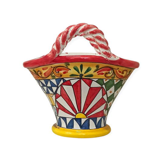 Sicilian Basket in Caltagirone Ceramic - Various Colors