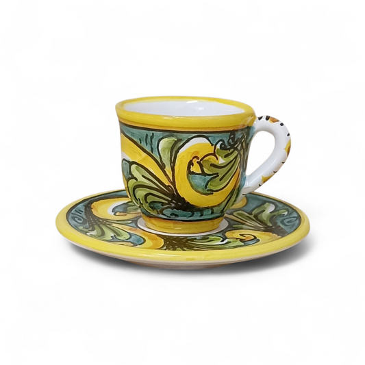 Set of a Cup and Saucer Shaped and Decorated in Sicilian Ceramic from Santo Stefano di Camastra