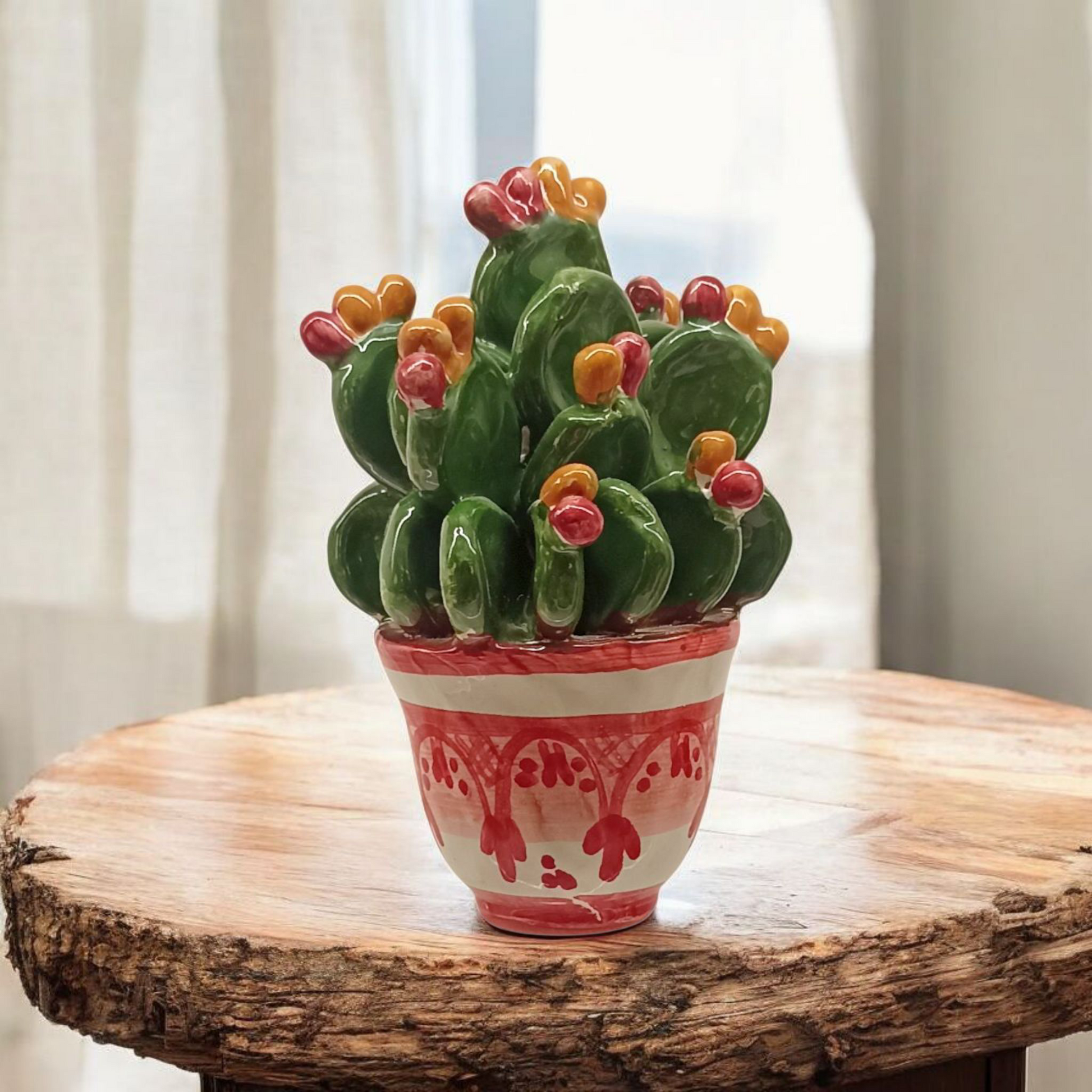 13 cm Sicilian ceramic succulents from Caltagirone, entirely handmade by master craftsmen. They embody the refined Sicilian artisan tradition. Crafted with care and precision, these decorative ceramics combine the natural beauty of succulents with the elegance of local craftsmanship. Perfect as unique gifts or decorative elements, they offer a combination of authenticity, durability, and Mediterranean style, enhancing any space with a touch of unique cultural heritage.