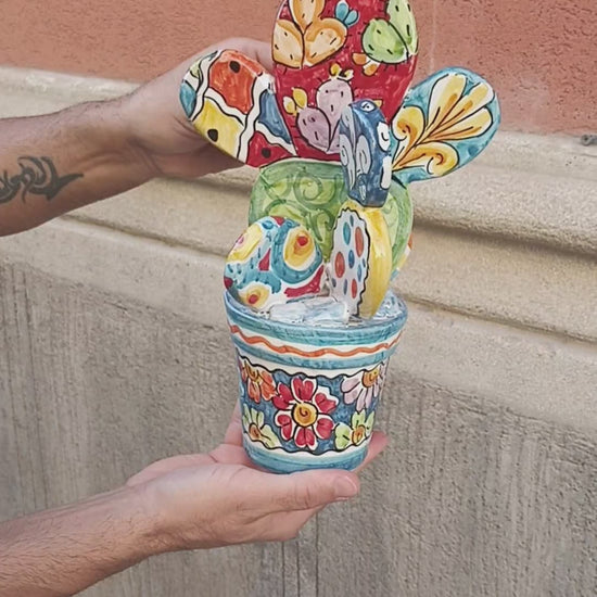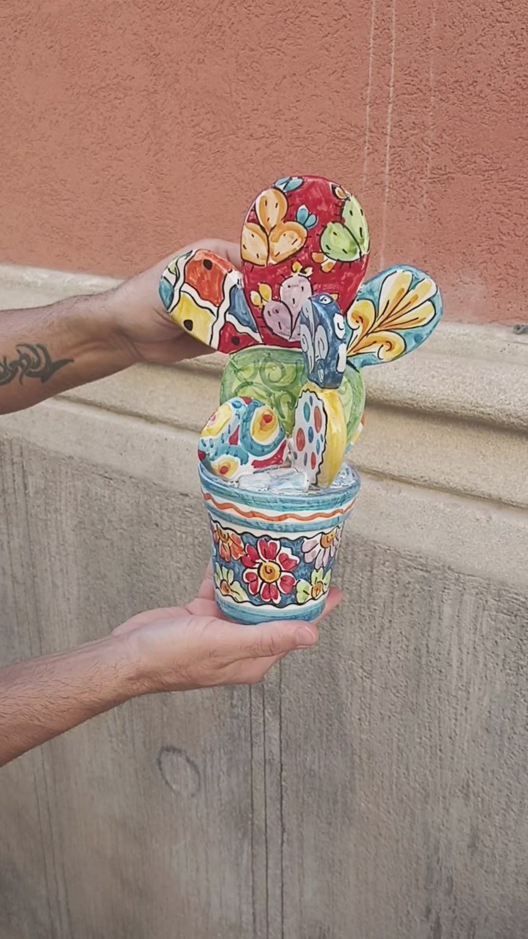 Pianta Fico d'India 29cm Multicolor in Ceramica Siciliana di Caltagirone